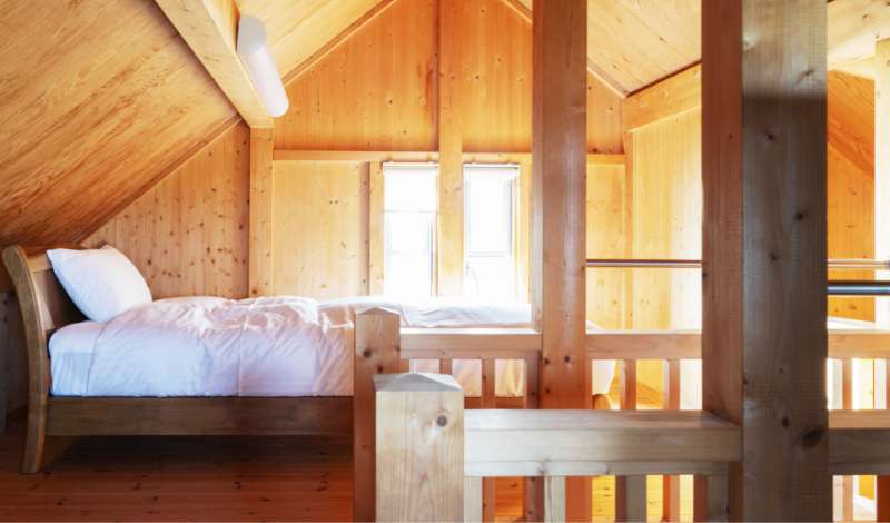 自然豊かな南阿蘇に佇む、小国杉の丸太で組んだ木の温もり溢れるログハウス。継ぎ目のない磨き丸太が持つ重厚感と、開放感ある室内空間は壮観です。